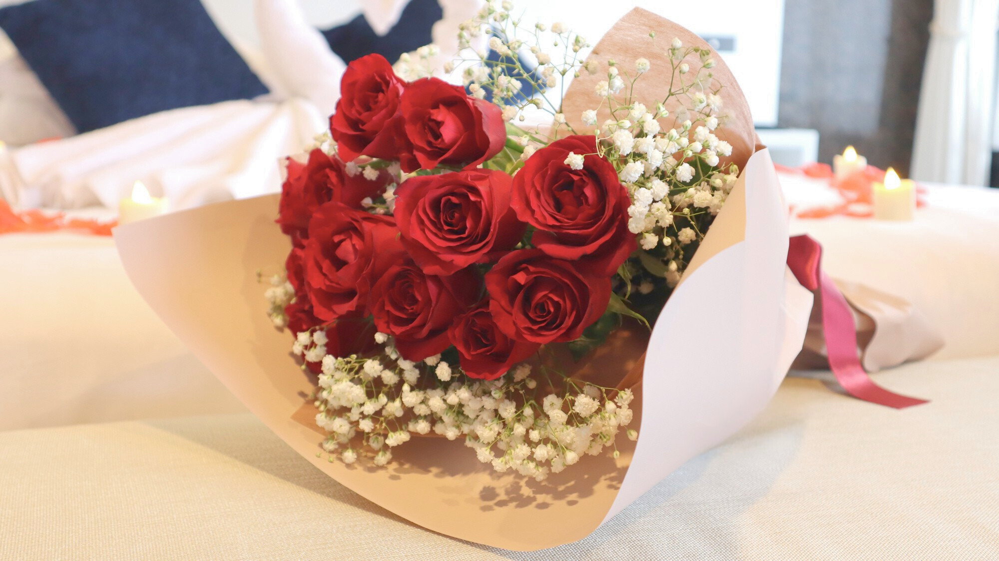 プロポ―ズ装飾付き宿泊プランには赤いバラ12本をご用意いたします。