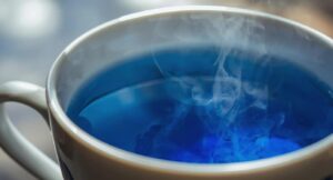 ホテルのイメージカラーにちなみ青いハーブ「バタフライピー」のハーブティーを期間限定でご提供。