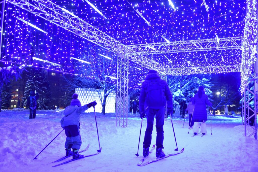 冬期間、中島公園体育センターで開催されている歩くスキー体験のコースが期間限定で夜間ライトアップされます。
