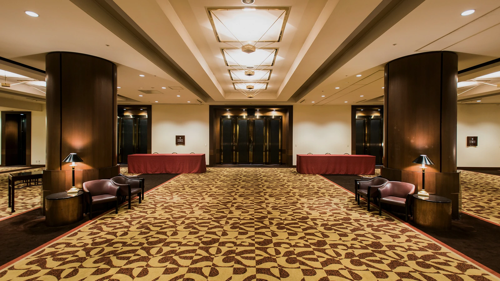 大宴会場やイベントホールへと続くホワイエは、ゲストを温かく迎えるホテルの顔。レセプションやウェルカムドリンクのサービス、展示ブースの設営など、多目的に活用可能。イベントのプロローグとして、また休憩や交流の場として、上質なひとときを提供します。