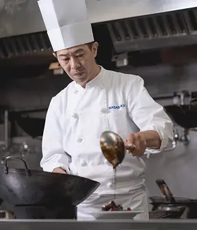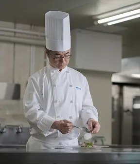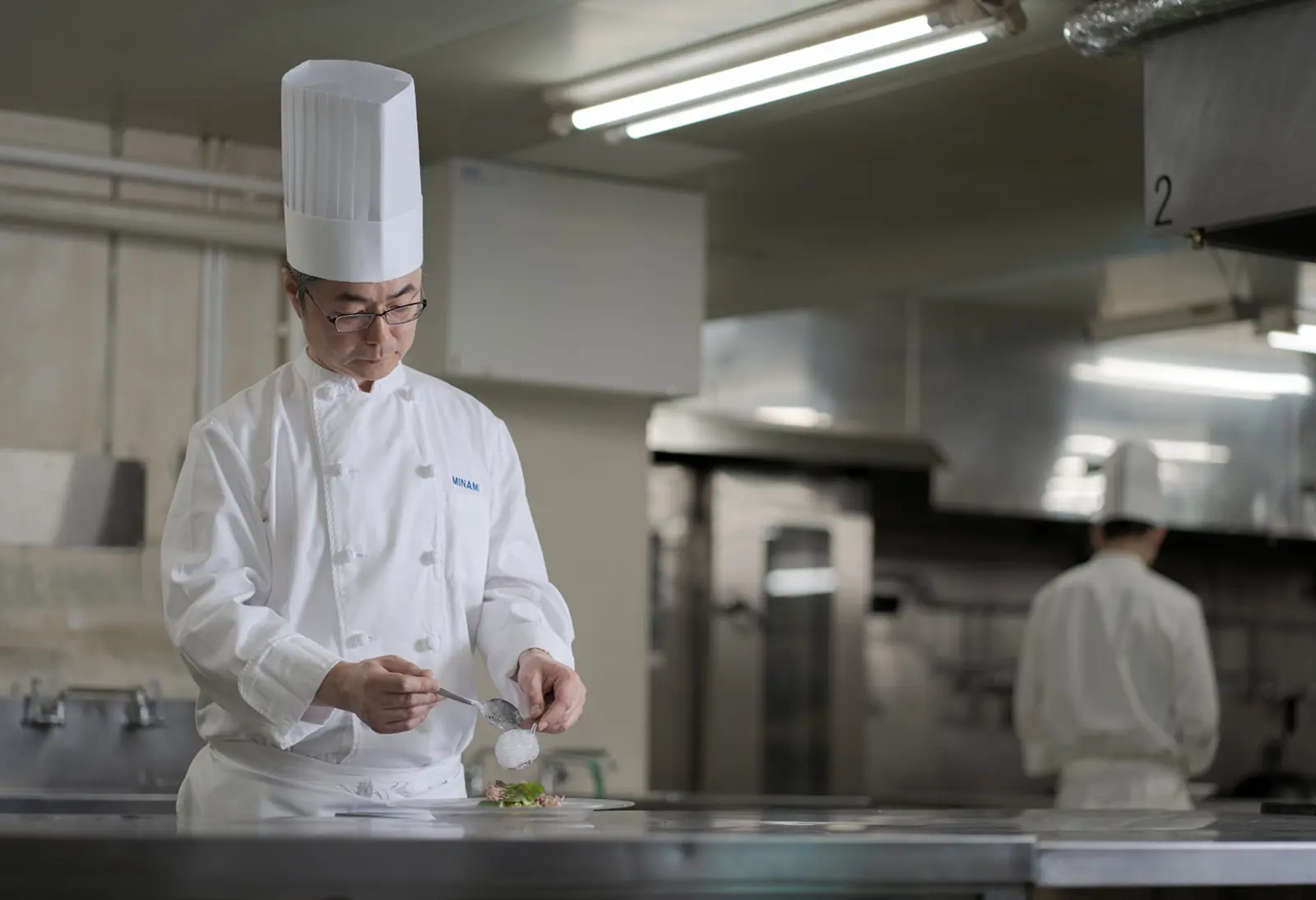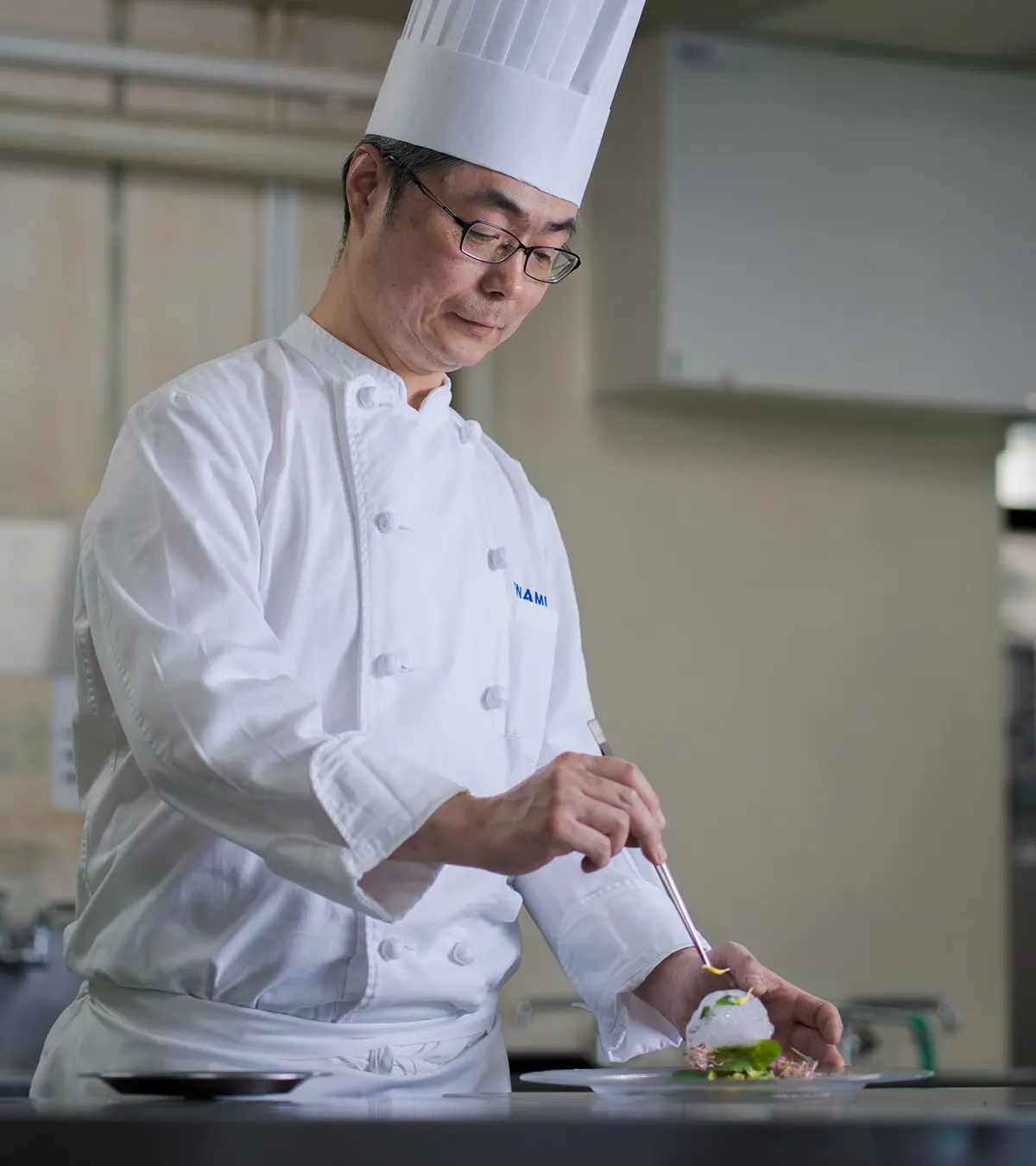 ホテル全体の味を統括する立場として、私が大切にしているのは「一皿の向こうにある笑顔」です。厳選した素材に真摯に向き合い、季節や地域の恵みを最大限に生かすこと。どんなに大きな宴でも、一人ひとりに心が届く料理を目指しています。スタッフ全員が同じ志を持ち、これからも記憶に残る一瞬をお届けできるよう、伝統と革新の信念のもと、真摯に料理と向き合ってまいります。