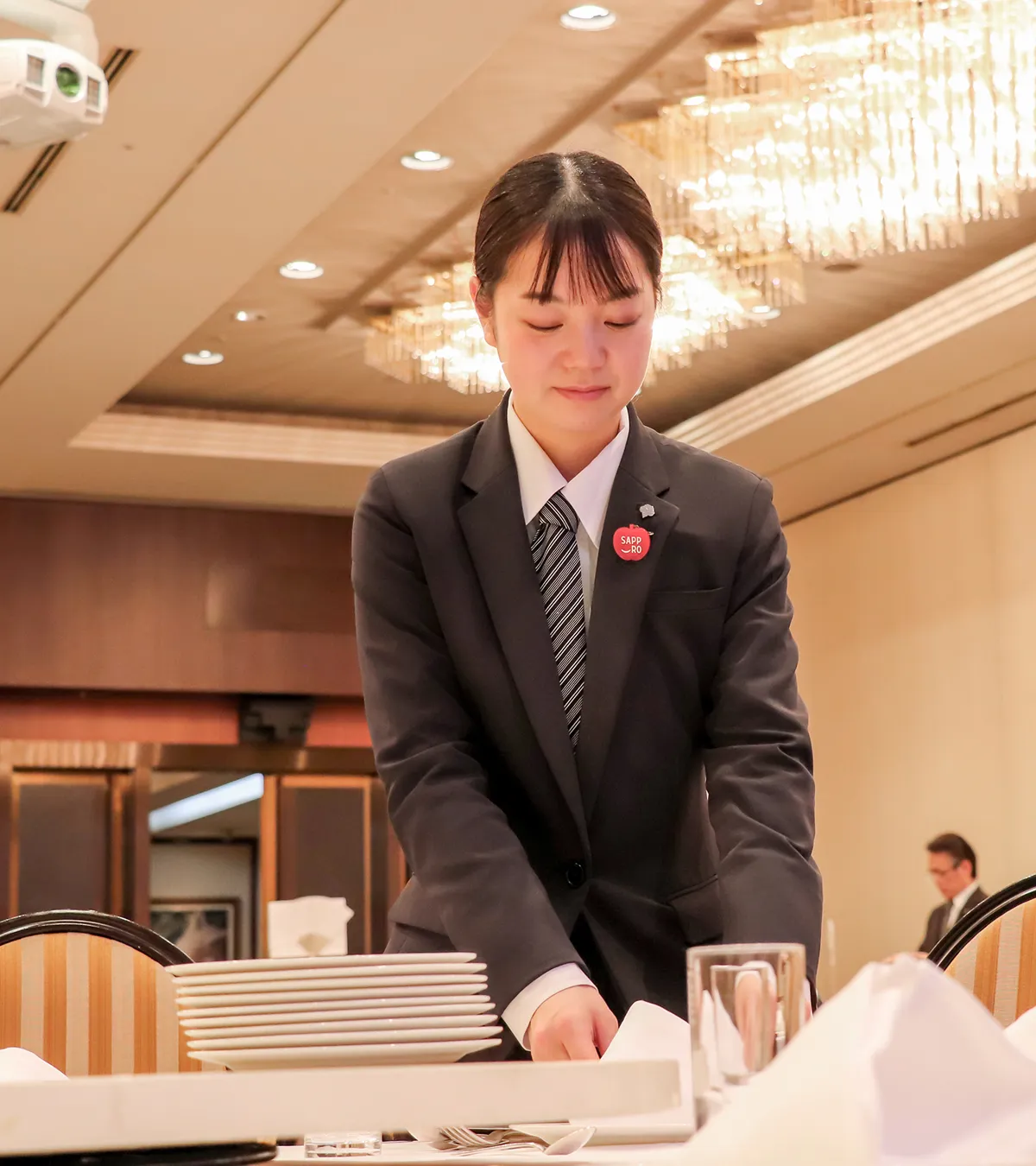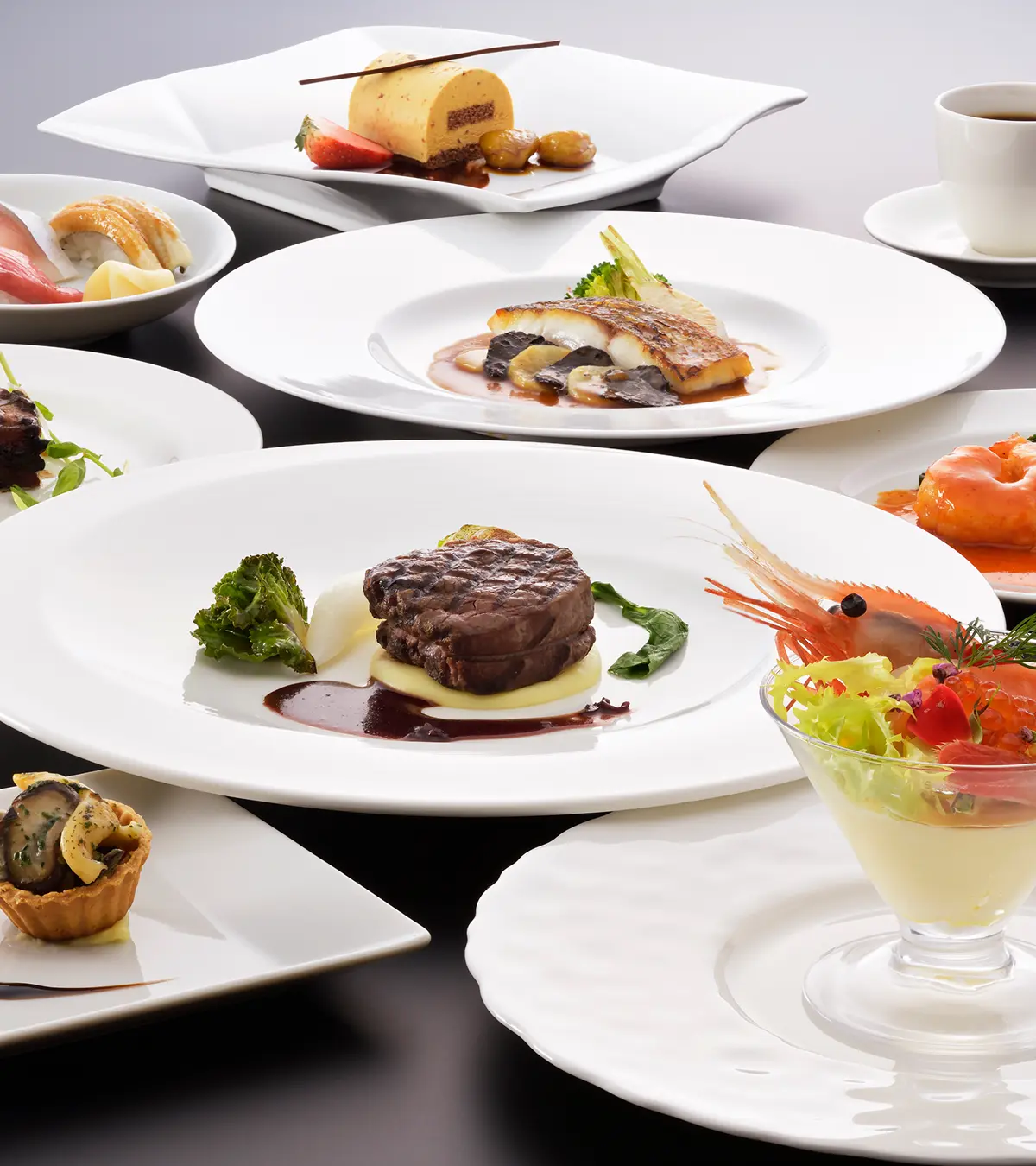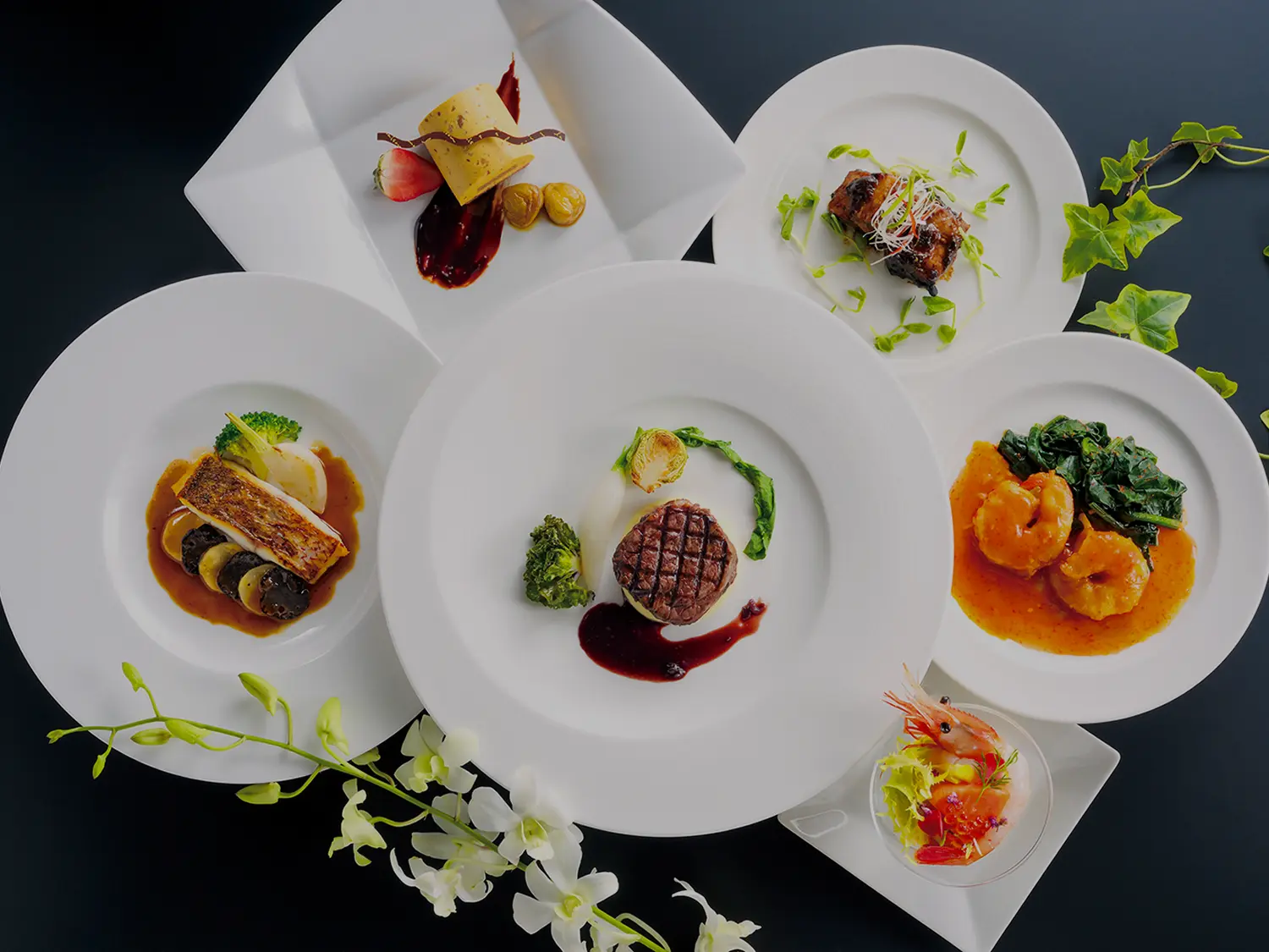 ホテル直営の一流レストランを担う中華・和食・洋食のシェフが腕を振るい、味わいはもちろん、見た目の美しさにもこだわった逸品をご提供いたします。上質な美食が饗宴の席を華やかに彩り、心に残るひとときを演出いたします。