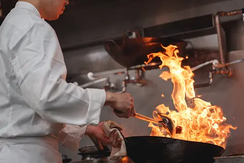 宴会場に隣接するメインキッチンから、出来立ての料理を迅速かつ最良の状態でお届けします。豊富なスタッフ体制と充実した設備により、細やかなサービスを行き届かせ、大規模なご宴席からパーティーまで円滑で上質なおもてなしを実現いたします。