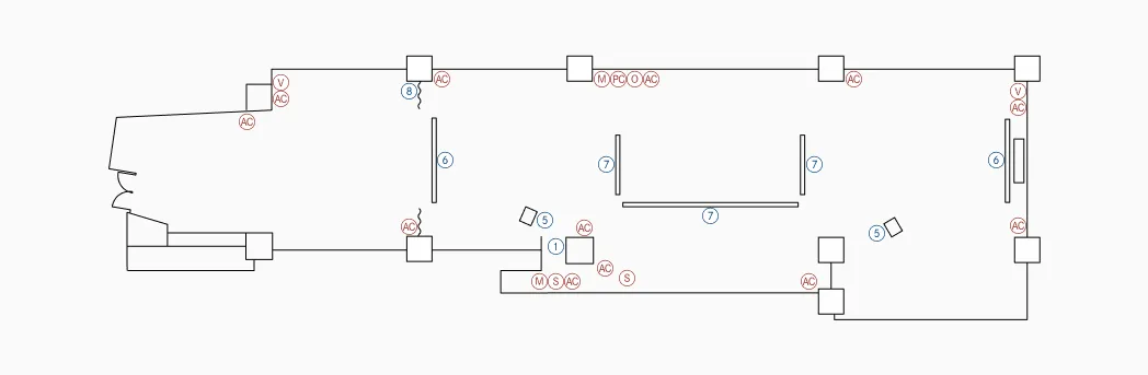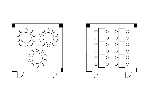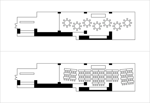 会議や懇親会に最適な中規模空間。用途に応じて自在にレイアウト可能です。