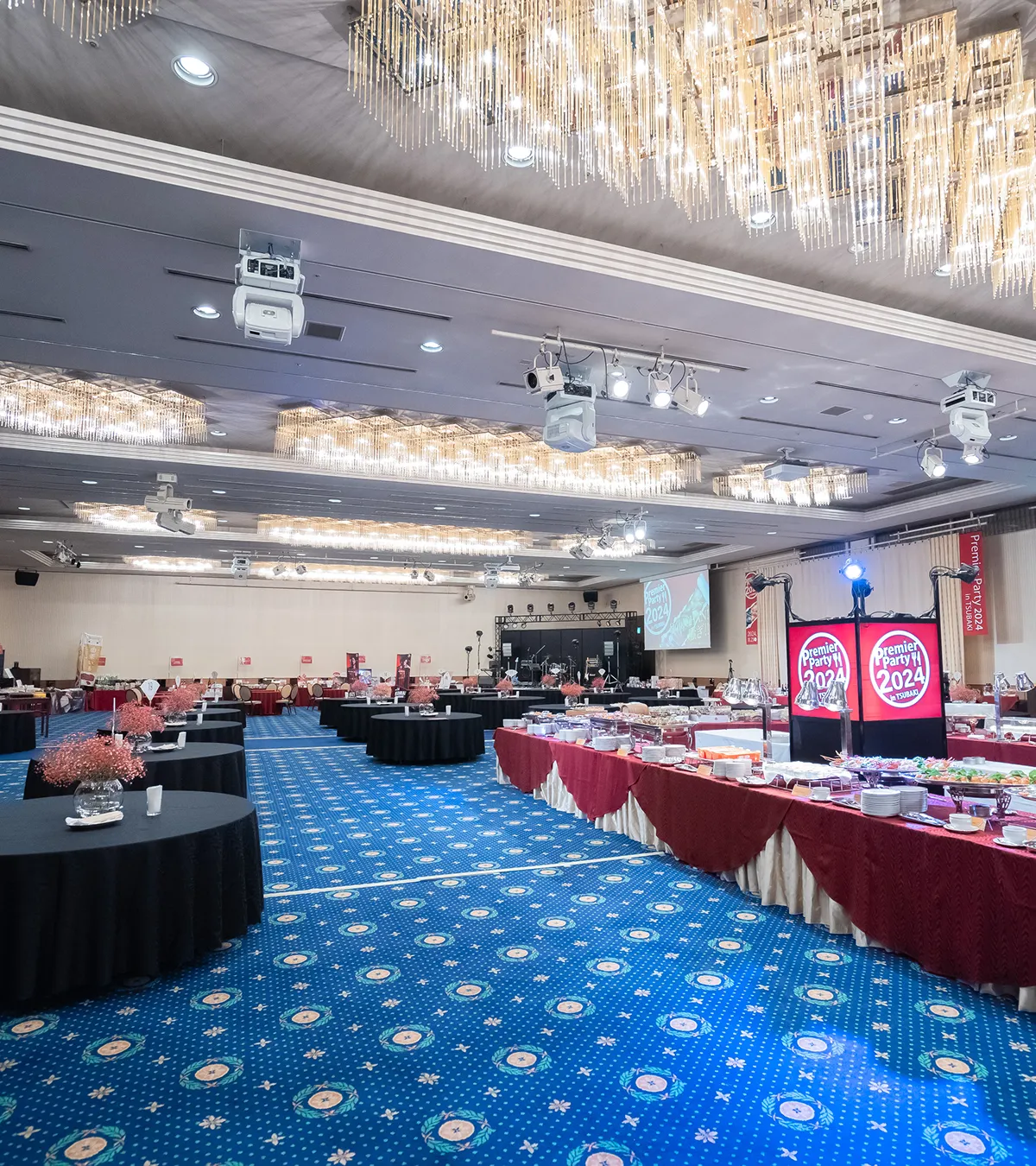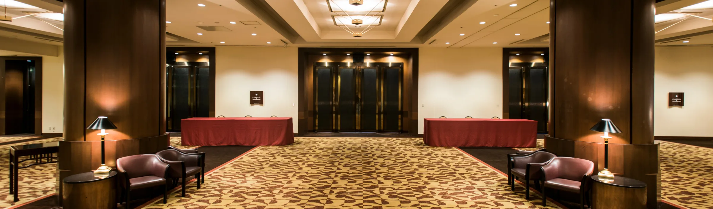 5つの宴会場と4つのイベントホールは、可動式の仕切りや多彩なレイアウトにより、会議や展示会から結婚披露宴まで幅広く対応可能です。規模や目的に応じて最適な空間をご提案し、円滑で上質なひとときを演出いたします。