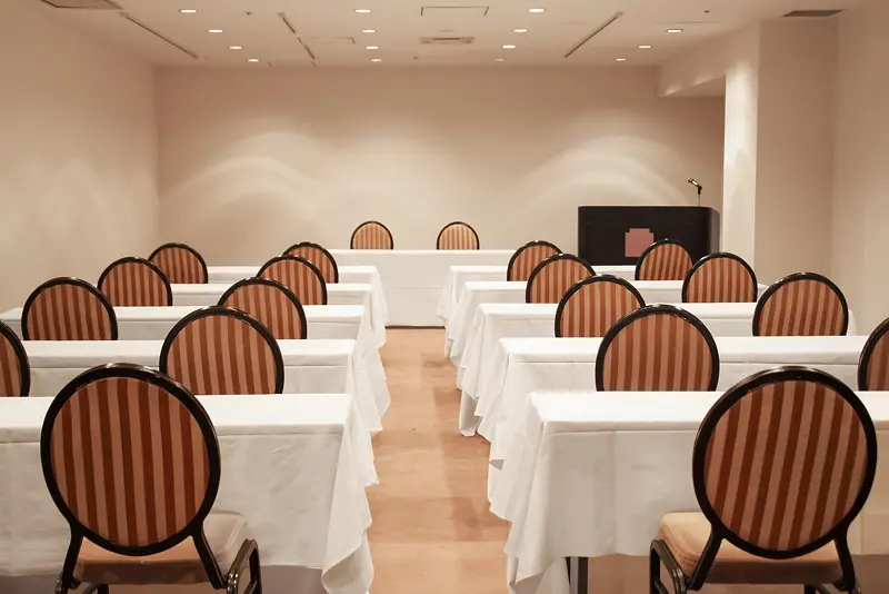 ご利用人数や目的にあわせて会場を3分割することができ、国際的な会合や会議・祝賀会・展示会・結婚披露宴など、あらゆるイベントに対応いたします。
