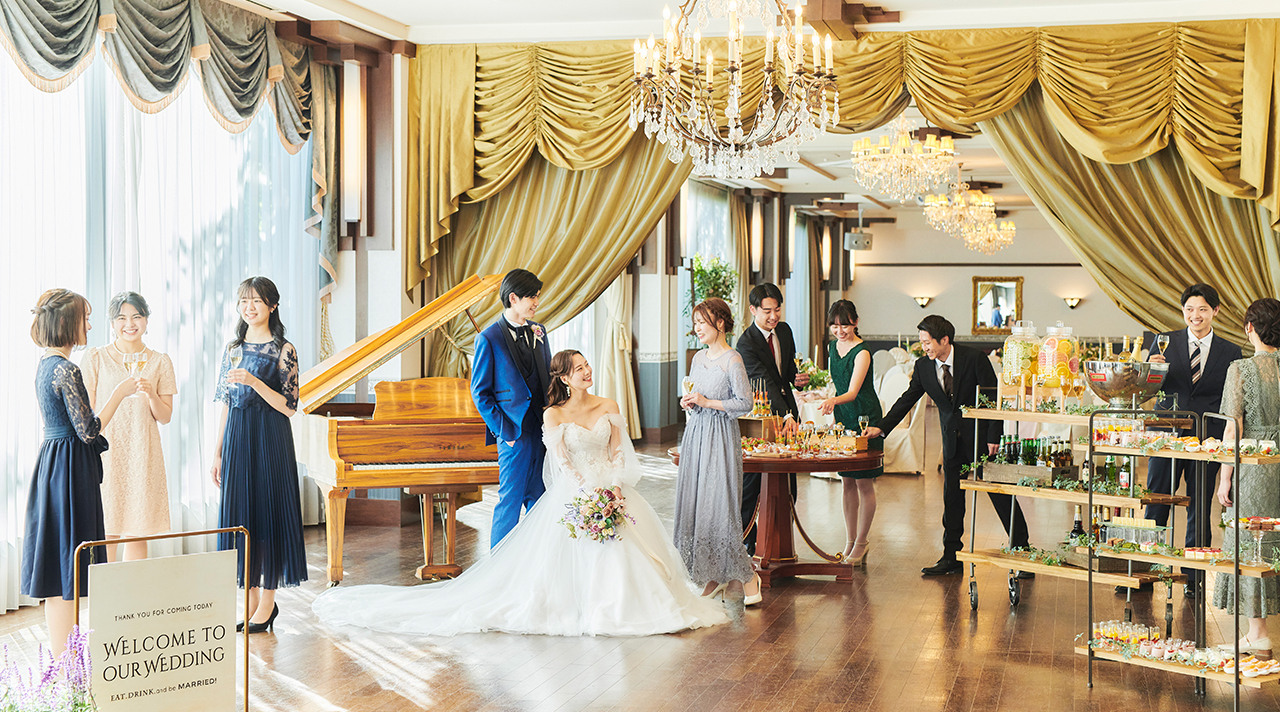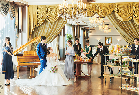 チャペルと専用エレベーターで繋がる邸宅風のパーティ会場 ホテル一角を貸し切れるので自在な演出でゲストの皆様と楽しめるパーティが叶います