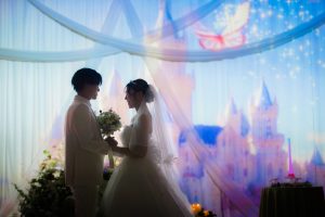 天井が高く広々とした空間はランウェイや花火で華やかさを演出し、お二人の喜びのシーンを格調高く包みます。
