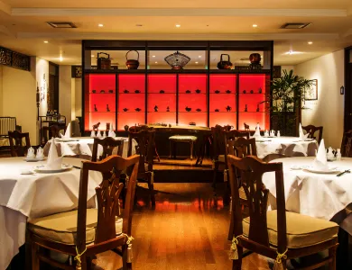 落ち着いた色調のインテリアと、さりげなく配されたアートが上質な雰囲気を醸し出しています。