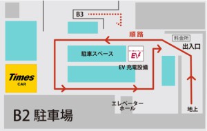タイムズのカーシェアとEV充電エネチャージはホテル地下2階の駐車場にございます。