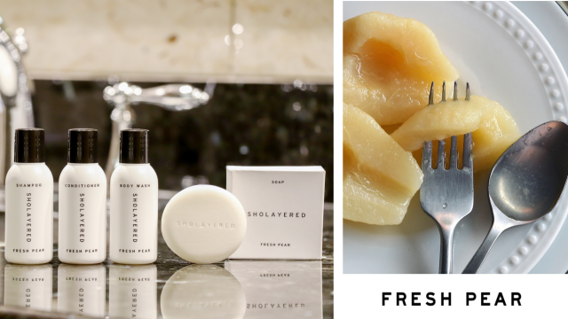 「SHOLAYERED」は、数多くの著名人やスポーツ選手、多様な企業ブランドなどを幅広く手がけているフレグランスプロデューサーの石坂将(いしざかしょう)氏が手掛ける、Made in Japanにこだわった香水ブランド。この度、最も代表的で人気のあるフレッシュペアの香りが採用され、同ブランドで初めてホテルアメニティがリリースされました。リサイクル素材の国際的認証「GRS(グローバルリサイクルスタンダード)認証」を満たしたリサイクル可能なパッケージを採用されていること、当館と同じ日本発のブランドであること、環境に配慮した素材とボトルであること、そしてこのさりげない贅沢な香りが当館のお客様に愛されると考え、当アメニティの採用に至りました。