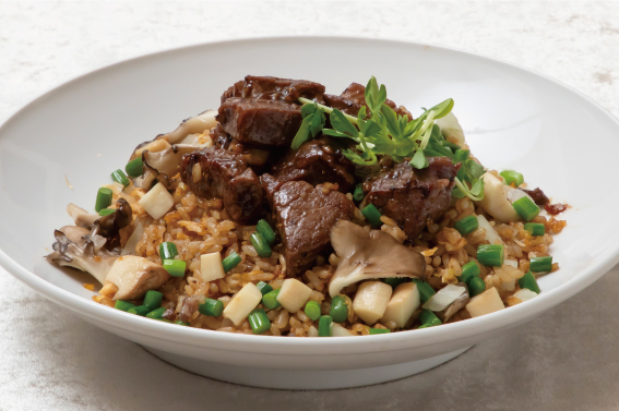 香ばしく焼いたA5ランクの黒毛和牛を自家製甘辛醤油でからめた炒飯。
