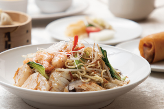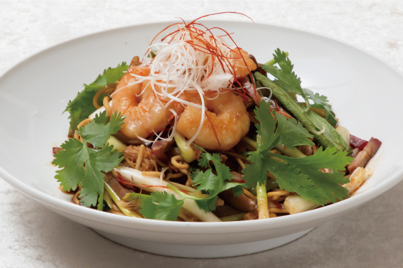 自家製叉焼と中国野菜をふんだんに使用しオイスターソースの香りが広がる広東風炒め和え麺。