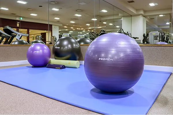 運動前後のリカバリーに最適なストレッチスペースには、バランスボールやストレッチポールをご用意